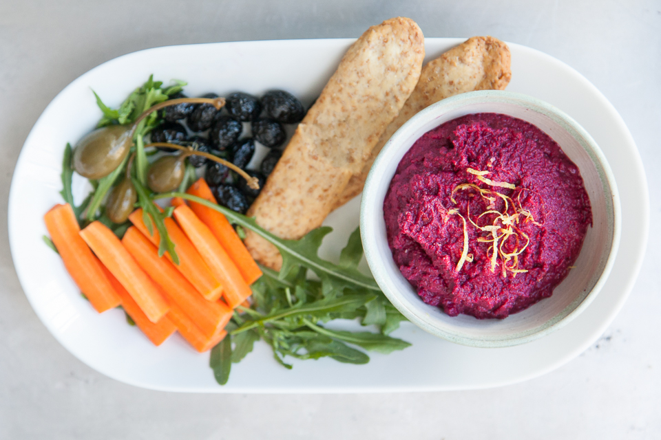 It’s obviously better to make this with fresh beets but you can use the ready cooked vacuum packed ones for a last minute dip. Serve it with pita, toast or crackers as part of a mezze or on its own as a snack. It’s light, it’s healthy, it’s tangy and the vivid magenta colour is stunning!