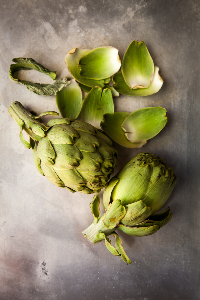 Artichokes…such strange things to eat. We nibble away at the ends of the leaves like biting stems of grass. Of course, as you go on, there’s more to bite until the leaves get so tender you can almost eat them all. And then, the prize, the heart, the delicate tender heart.