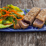 Fish and seafood February 4, 2019 by Fresh Seafood with Pasta and Chermoula Grilled Squid Salad Marinated Salmon – Gravlax Octopus, Octopi… Oven Baked Sea Bream with Herbs and Black Garlic Pan Seared Red Snapper with Sumac Spicy Thai Mussels Tuna Vietnamese Prawn Salad