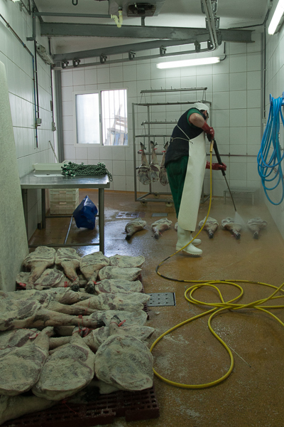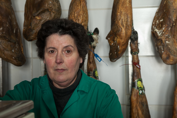 The curing of the bellota takes about two years. It is first salted for two weeks, then washed and hung in a cool chamber for two months, then air dried naturally for up to two years depending on the size. Nothing else – no additives of any kind. I have no idea how the flavour develops all the way through. It comes out slightly sweet, salty and smoked yet it is all just pure meat. The texture is smooth. The fat of a good bellota just melts in your mouth – you don’t even feel it’s there. It’s wonderful!