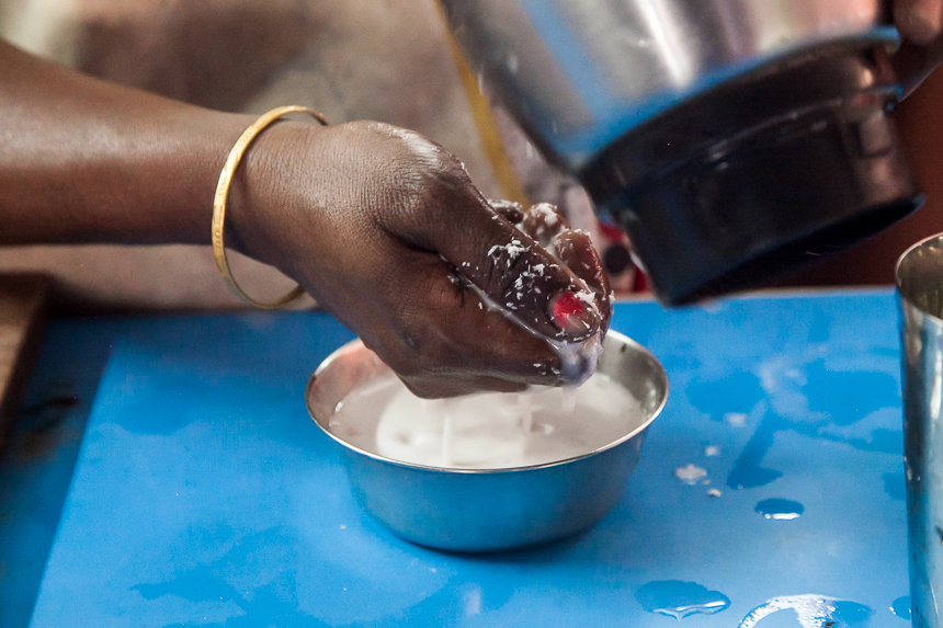 Needless to say, once the German couple left, she joined us at our table, and readily agreed to let me come the next day and photograph her cooking. And then she hung a garland of jasmine in my hair and kissed me again. I went back to our little room feeling much warmer towards Mamallapuram.