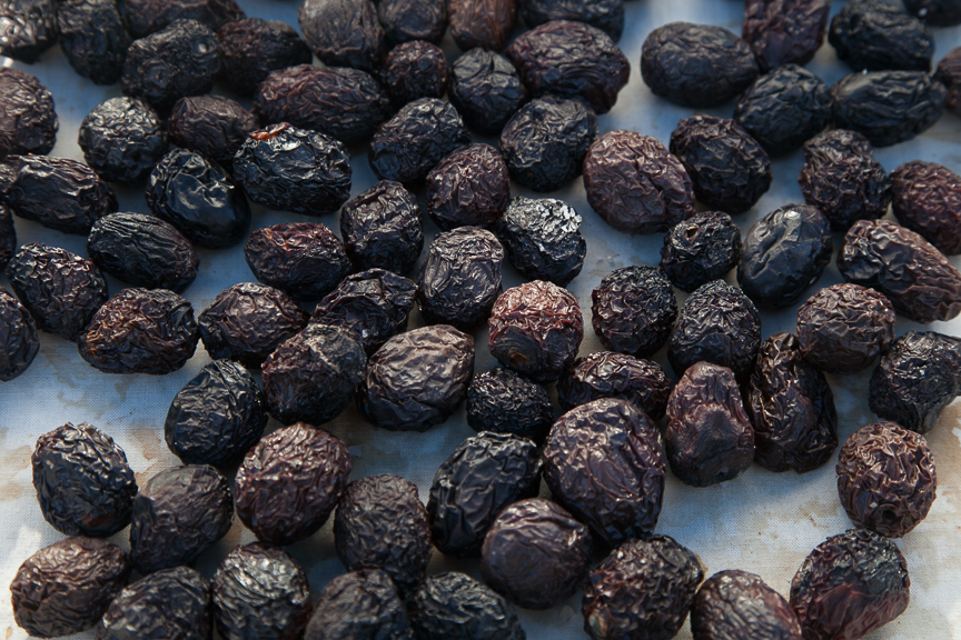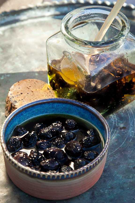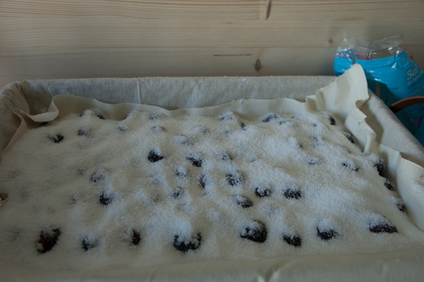 I’d made green ones before so I knew they would be OK but I’d never tried making the wrinkly Moroccan black ones and had no idea if they would work. Well, they did and if anyone reading this has access to fresh black olives and and a few kilos of salt, here’s how you do it.