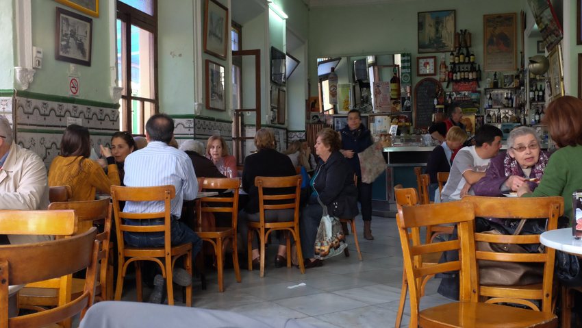 But I suppose I should count my blessings while I can. The orange juice is still freshly squeezed and deliciously pure and sweet. And the coffee comes out steaming from the noisy espresso machine. And the locals, despite all economic woes, are still filling the bar with their meetings and greetings and animated chatter in true Spanish style All is not lost – yet.