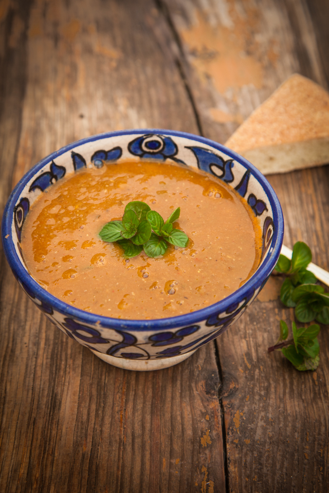 Moroccan food is rich and diverse but on every menu and perhaps in every household in Morocco you will find harira. Harira is a lentil soup. It is eaten throughout the day including for breakfast and it is the traditional food to break the fast at Ramadan. Strange as it might sound, it is often served with a bowl of dates.