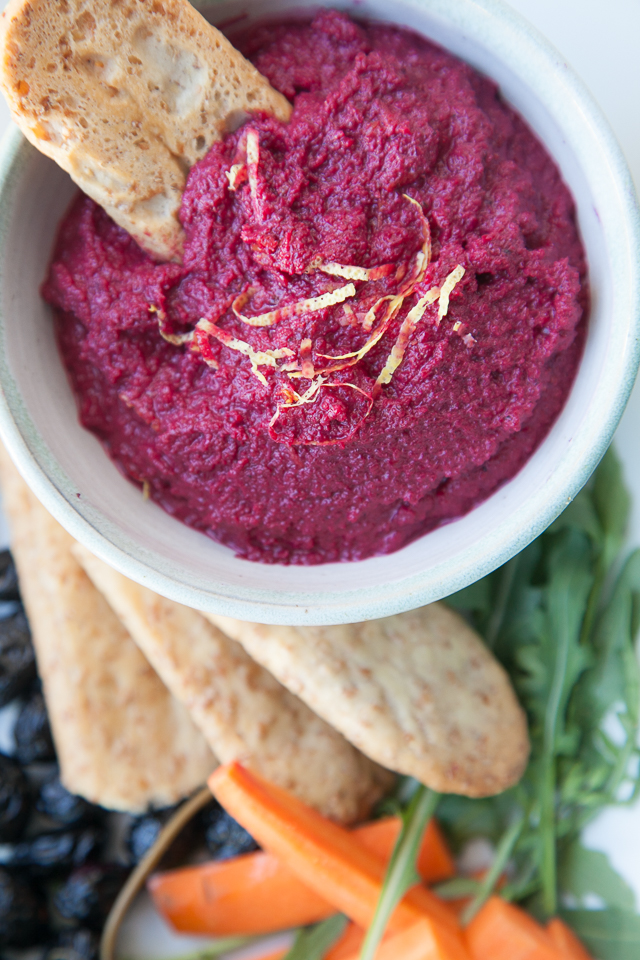 Obviamente, es mejor hacerlo todo con remolacha fresca, pero para hacer un entrante de forma improvisada se puede usar la que venden cocinada y envasada al vacío. Sírvelo con pan pita, tostadas o galletitas como parte de una selección de aperitivos o a solas como entrante. Es ligero, sano, sabroso y su vibrante color magenta es maravilloso!